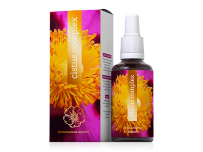 Doplněk stravy - kapky. Cistus complex je bioinformační přípravek obsahující vysoce koncentrovaný extrakt dvou druhů bylin – Cistus incanus a Cistus ladanifer, doplněný o čistou esenci Cistus ladanifer.