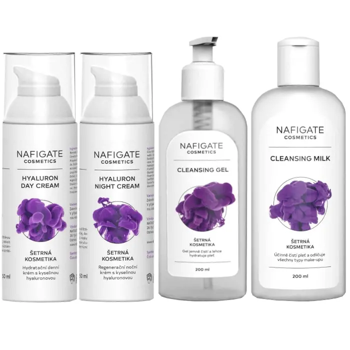- Nafigate kyselina hyaluronová denní krém 50 ml + noční krém 50 ml + čistící gel 200 ml + čistící mléko 200 ml