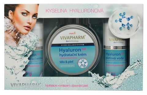 Dárkové balení hydratační péče s kyselinou hyaluronovou zajišťující omlazení a hydrataci pleti a pokožky. Obsahuje nízkomolekulární kyselinu hyaluronovou, která se nazývá molekula mládí pro svou přirozenou schopnost zachovávat v pleti optimální stupěň hydratace.