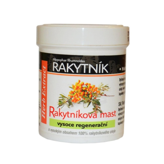 Bylinná mast s vysokým obsahem rakytníkového oleje, který má výrazný regenerační a epitelizační účinek. Mast s vysokým obsahem olejů velmi dobře hydratuje a promašťuje pokožku. Zvyšuje vitalitu a pružnost pokožky.