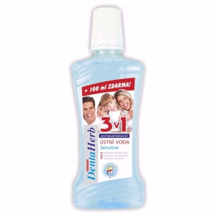 Antibakteriální Sensitive ústní voda s fluorem poskytuje ochranu před zubním povlakem, ničí bakterie v mezizubním prostoru a udržuje svěží dech.